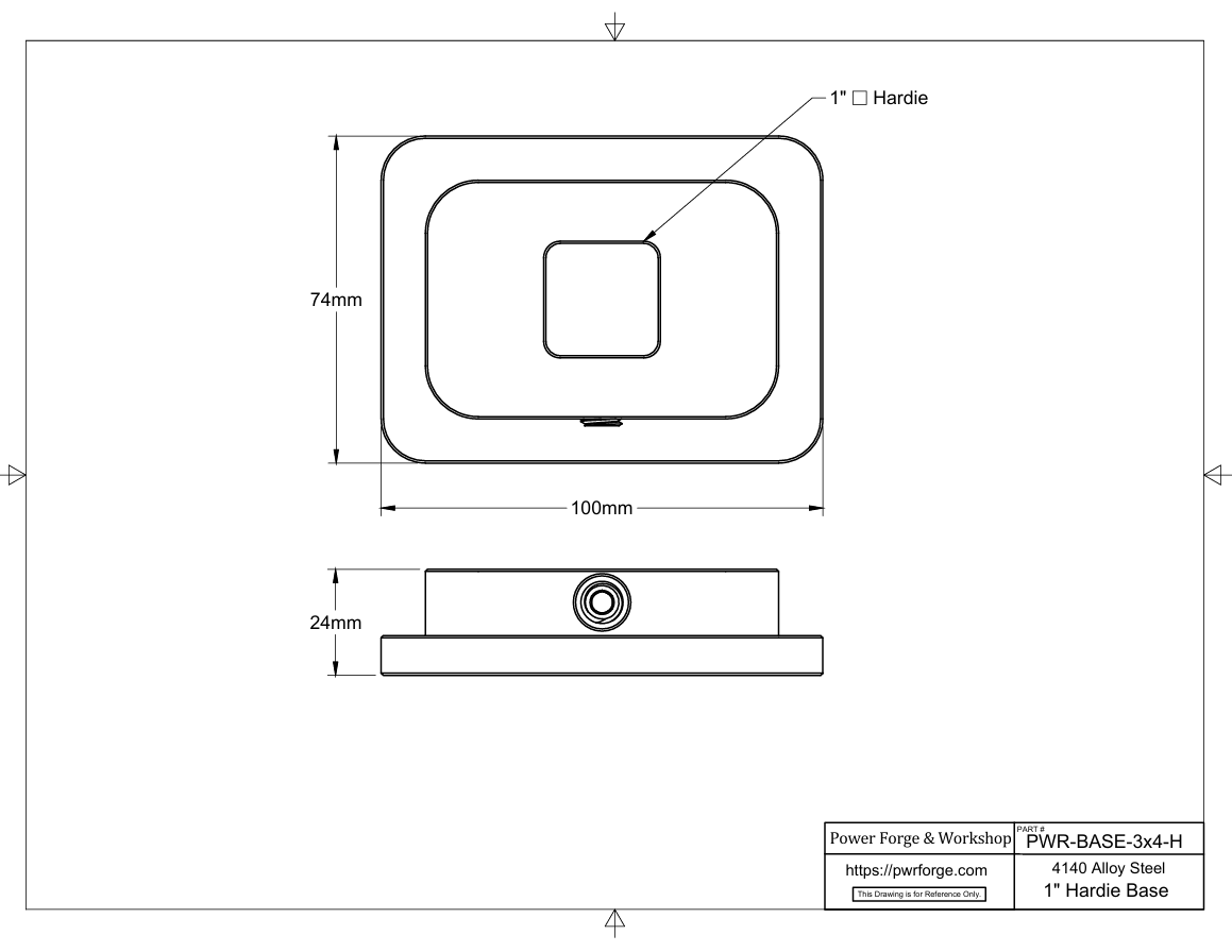 A precision‑engineered, hardened‑and‑tempered 4140 steel holder that lets blacksmiths securely mount 1‑inch Hardie tools on Power Forge’s 12 × 18 × 1 in. Zero‑Point or Clamp‑Style base plates. Designed for durability, repeatability, and on‑the‑fly versatility.