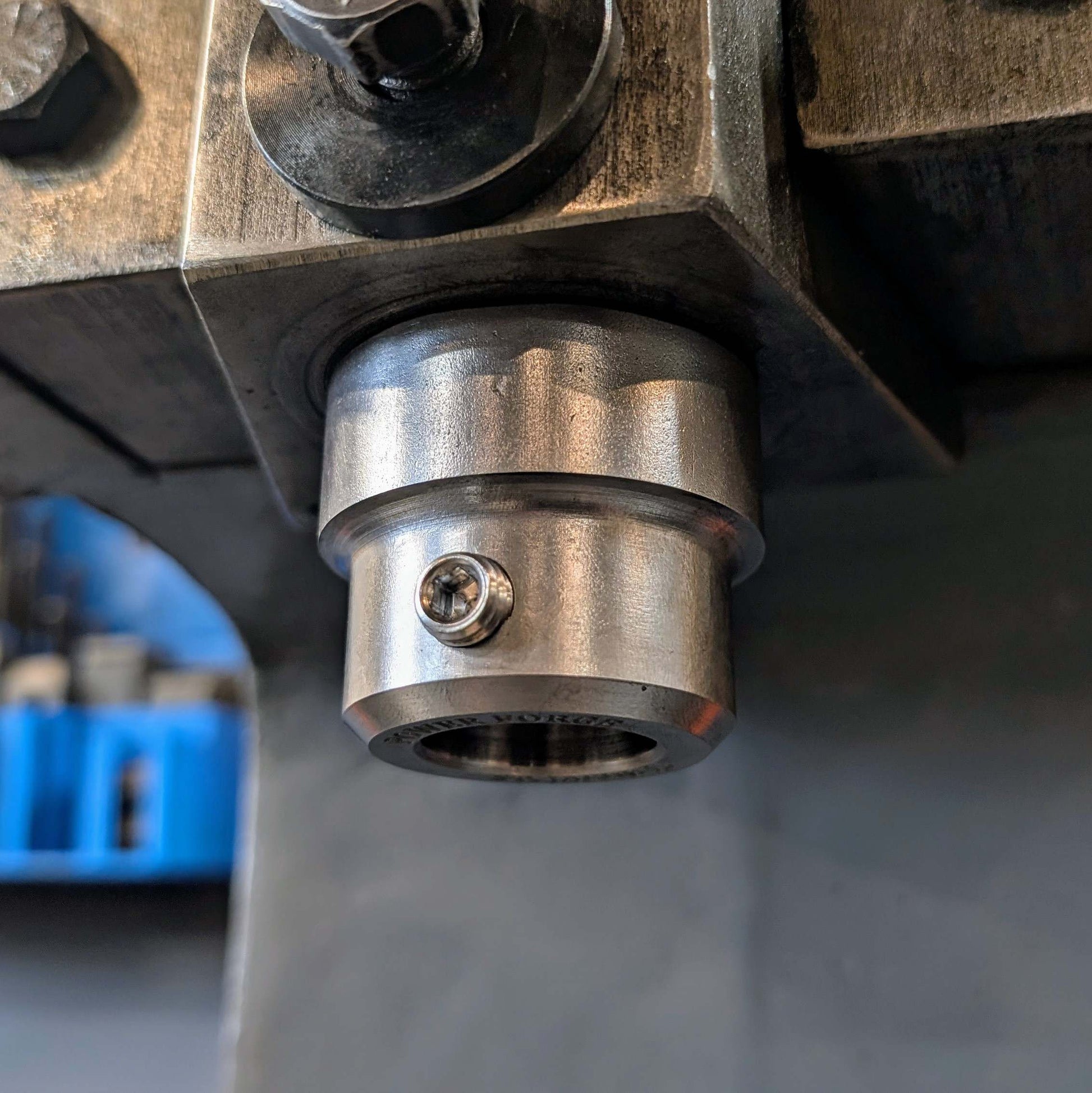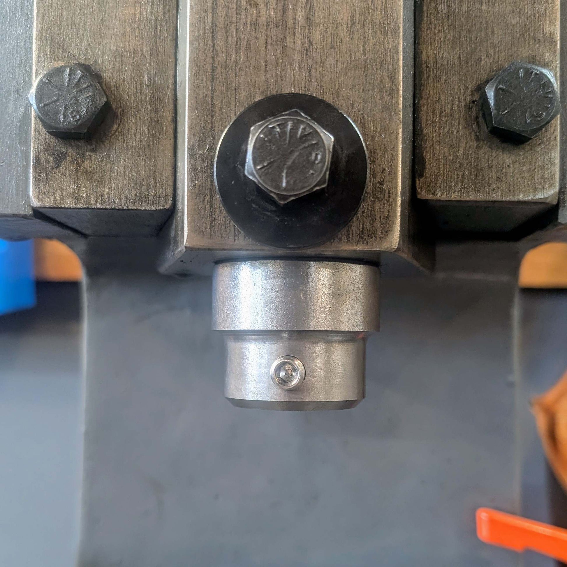 Designed to accept 1-inch shank Fly Press tooling, it allows for fast and secure tool swaps, minimizing downtime and boosting productivity. A 3/8"-16 set screw (included) ensures your tooling stays firmly locked in place during operation.